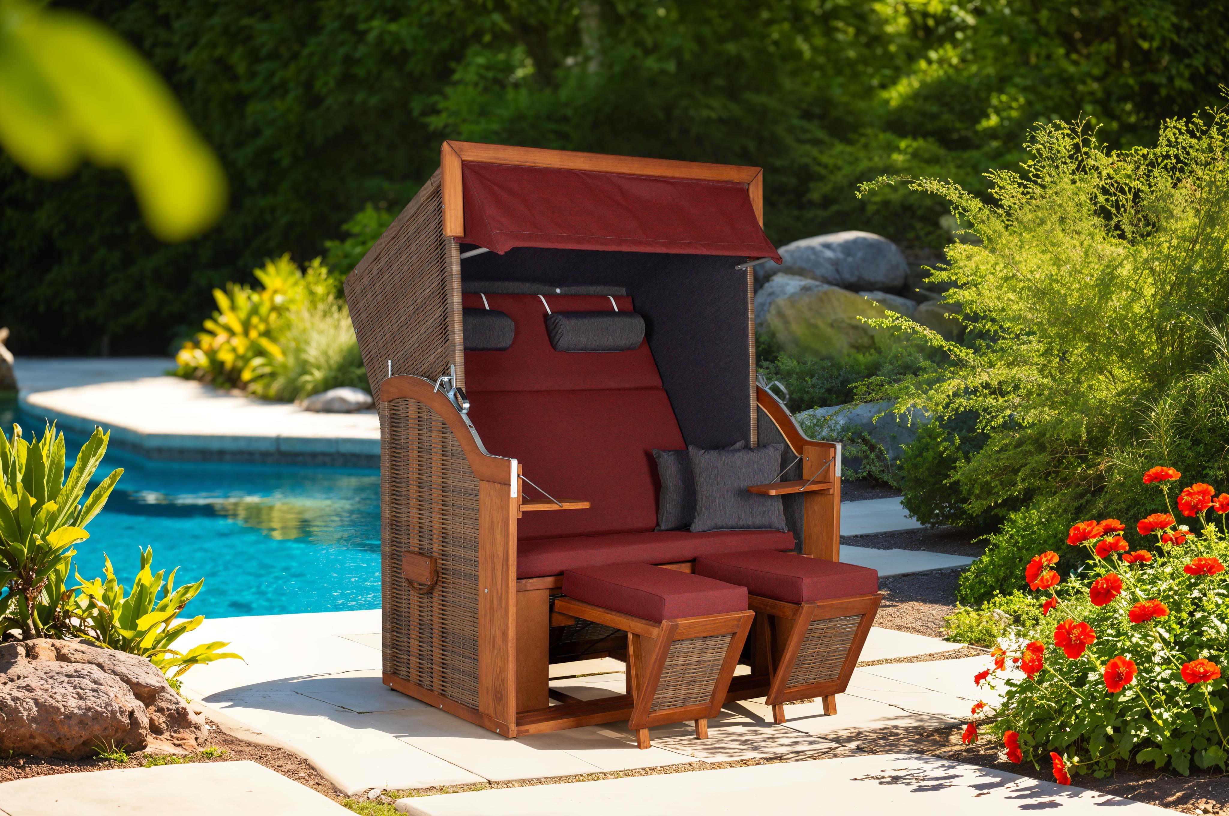 - Kompakter 2-Sitzer Strandkorb aus zertifiziertem Pinienholz