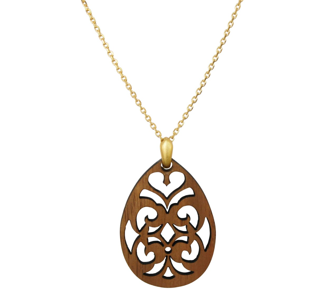 - naturbelassenes Walnuss & vergoldete Sterlingsilberkette (925)