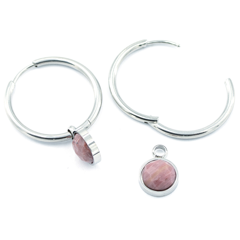 Ein besonderes Highlight ist der abnehmbare Naturstein-Anhänger, der in den Varianten Cabochon Perlmutt oder Jade erhältlich ist. Dieser Anhänger verleiht den Ohrringen eine individuelle Note und ermöglicht es, den Look ganz nach Lust und Laune zu variieren.
