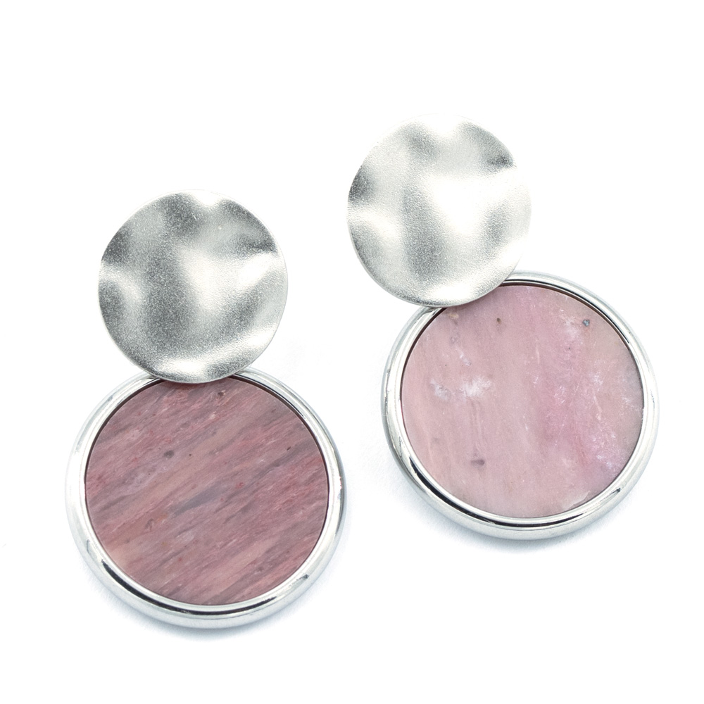 Der Anhänger aus edelstahl PVD-beschichtetem Material ist mit wunderschönen Cabouchons aus Perlmutt und Jade verziert, die dem Ohrring eine besondere Note verleihen.