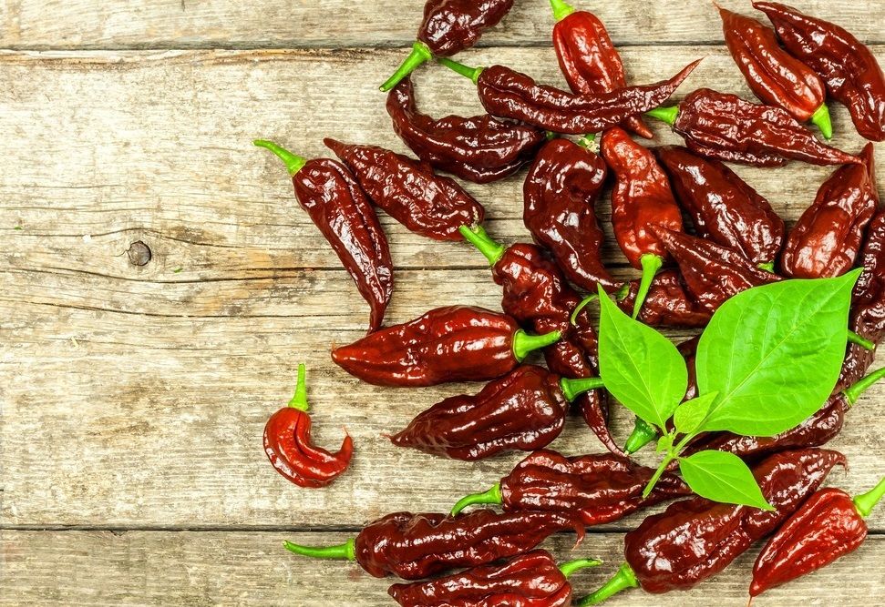 - Chili Pepper Bhut Jolokia Red - Capsicum annuum (Scoville: Gnadenlos scharf, schleichender Angriff mit bis zu 1 Million Scoville. Stufe 10++)