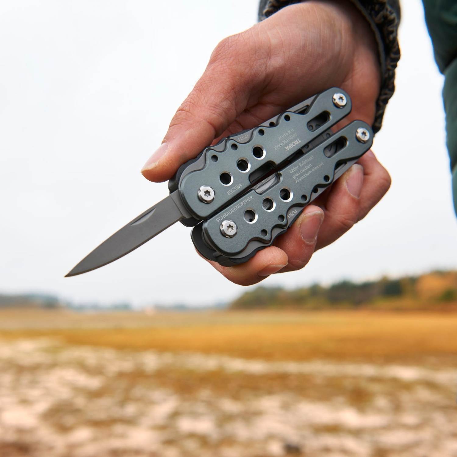 Das RUCKSACK TOOL ist dein vielseitiger Begleiter für alle Abenteuer! Ob du den Tag am Berg verbringst oder an einem DIY-Projekt arbeitest, dieses Multitool lässt dich mit seinen 15 Funktionen nie im Stich. Dank des praktischen Karabiners ist es ideal zum Anhängen an die Gürtelschlaufe, den Rucksack oder andere Ausrüstungsgegenstände. Mit seinem schicken Design und den robusten Materialien ist das RUCKSACK TOOL ein echtes Qualitäts-Multitool.