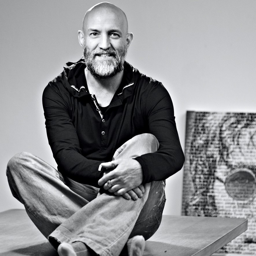 Der Kölner Künstler SAXA "schreibt" seine Bilder von Hand, Buchstabe für Buchstabe, Wort für Wort auf Leinwand.