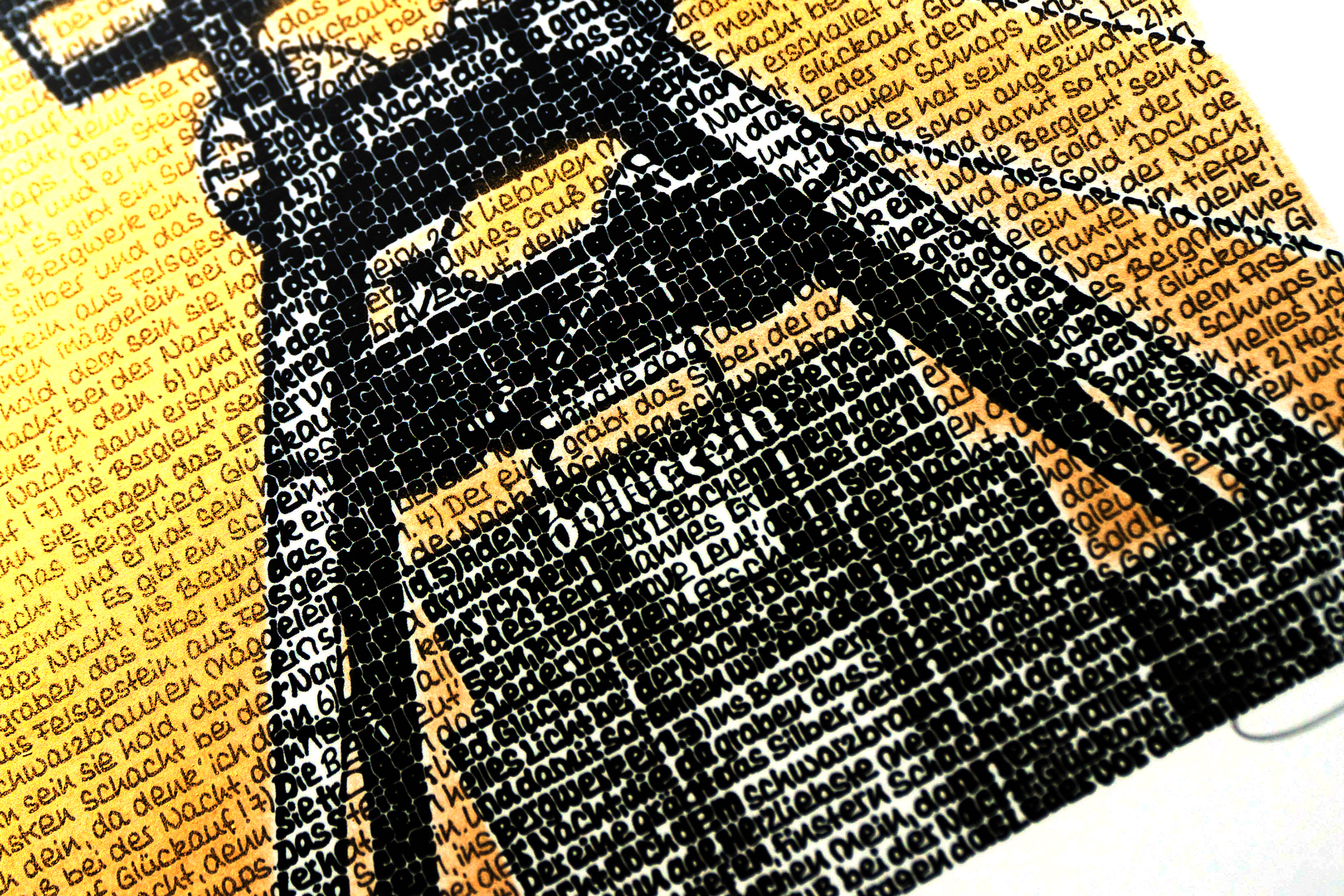 Das bekannteste Lied aus dem Ruhrgebiet, das Steigerlieg "Auf die goldenen Zeiten" wurde hier auf dem Bild verarbeitet.