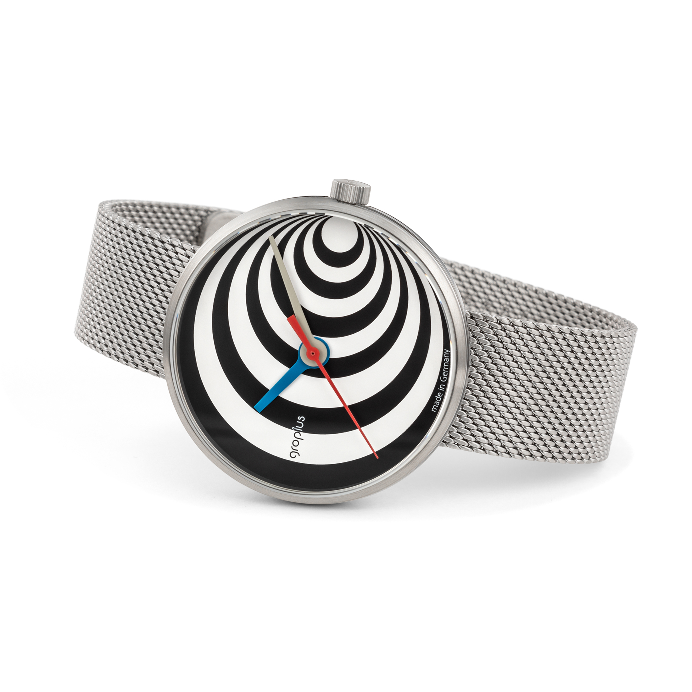 Das Design greift die grafischen Experimente von László Moholy-Nagy und die Farbtheorien von Josef Albers auf, während das Zifferblatt an die markante Wendeltreppe der Bauhaus-Universität Weimar erinnert. Ein präzises Uhrwerk und eine klare Formsprache schaffen ein Zeitgefühl, das Minimalismus und Innovation vereint.