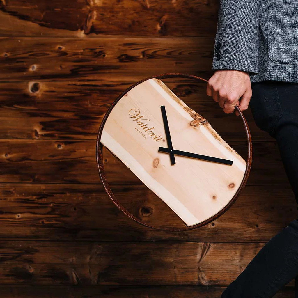 Diese Premium Wanduhr aus Eiche mit einem Junghans Uhrwerk und neutralen Metallring bringt die Natur in das Zuhause.