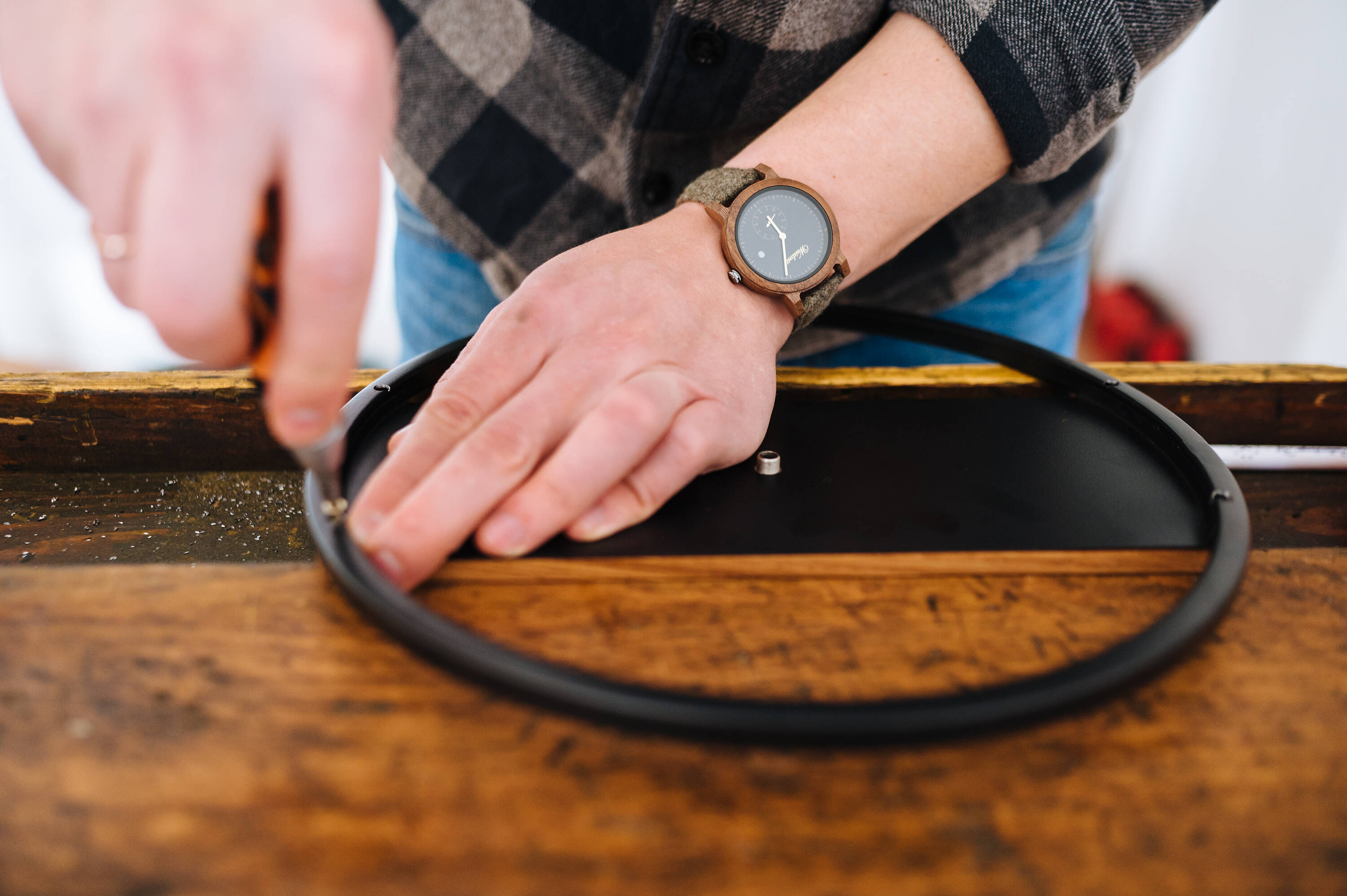 Diese Premium Wanduhr aus Zirben-Vollholz, mit präzisem deutschen Junghans Uhrwerk und dem neutralen Rostfarbenem Metallring, bringt die Natur in das Zuhause.