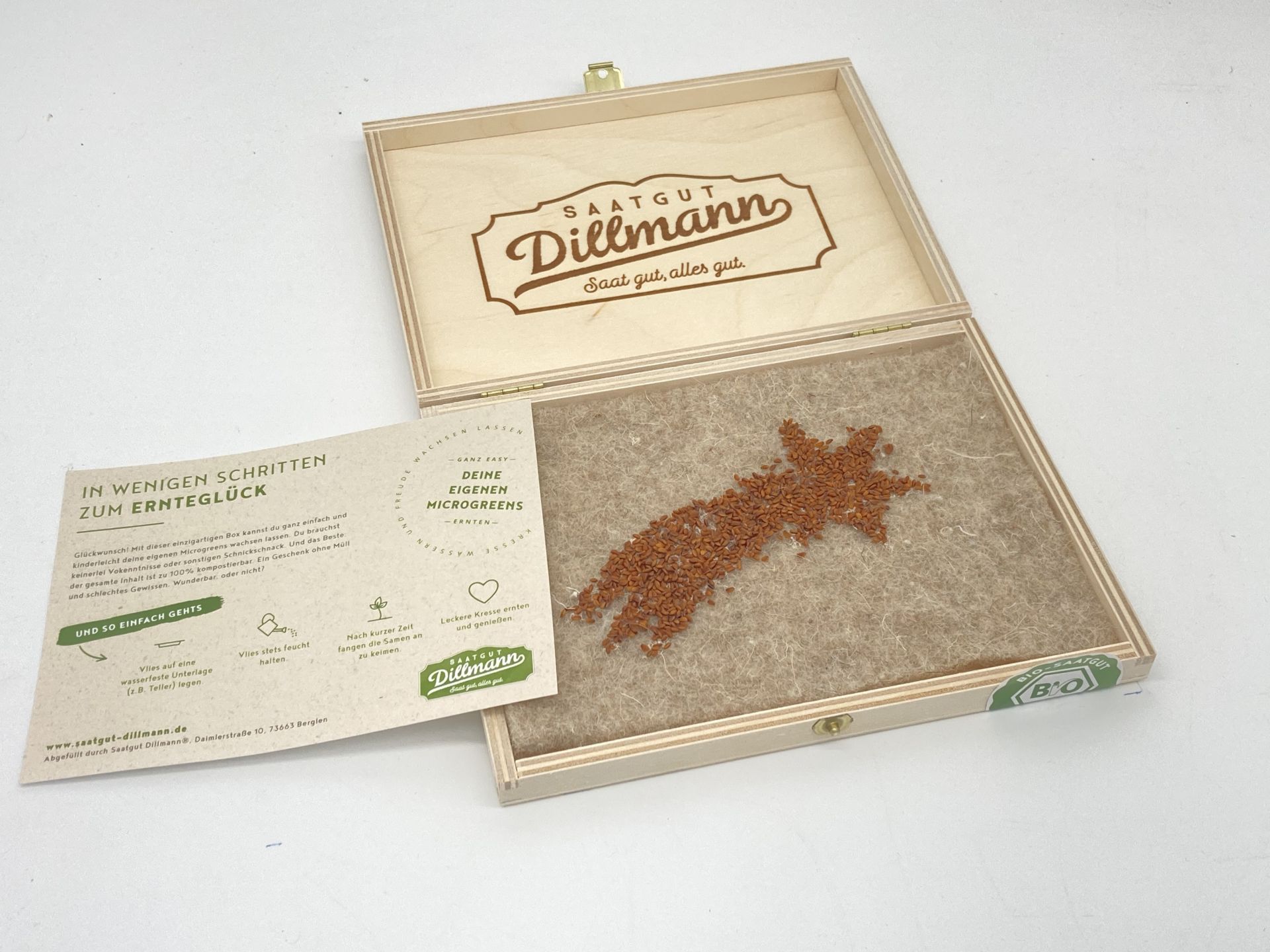 Die Kresse Box Bio Sternschweif bietet eine kreative Möglichkeit, grüne Weihnachtsgrüße zu überbringen und eignet sich gleichzeitig hervorragend als Geschenkidee. Das Set beinhaltet ein Naturvlies, das auf einer wasserfesten Unterlage wie einem Teller platziert wird. Es ist wichtig, das Vlies stets feucht zu halten, ohne dass sich Staunässe bildet. Innerhalb kurzer Zeit wächst frische Kresse heran, die nicht nur dekorativ ist, sondern auch als gesunde Zutat verwendet werden kann. Das Naturvlies ist zu 100 Prozent kompostierbar und somit besonders umweltfreundlich. Hergestellt unter der Bio-Zertifizierung von DE-ÖKO 007 garantiert das Produkt höchste Qualität und Nachhaltigkeit, perfekt für ein grünes Highlight in der Weihnachtszeit.